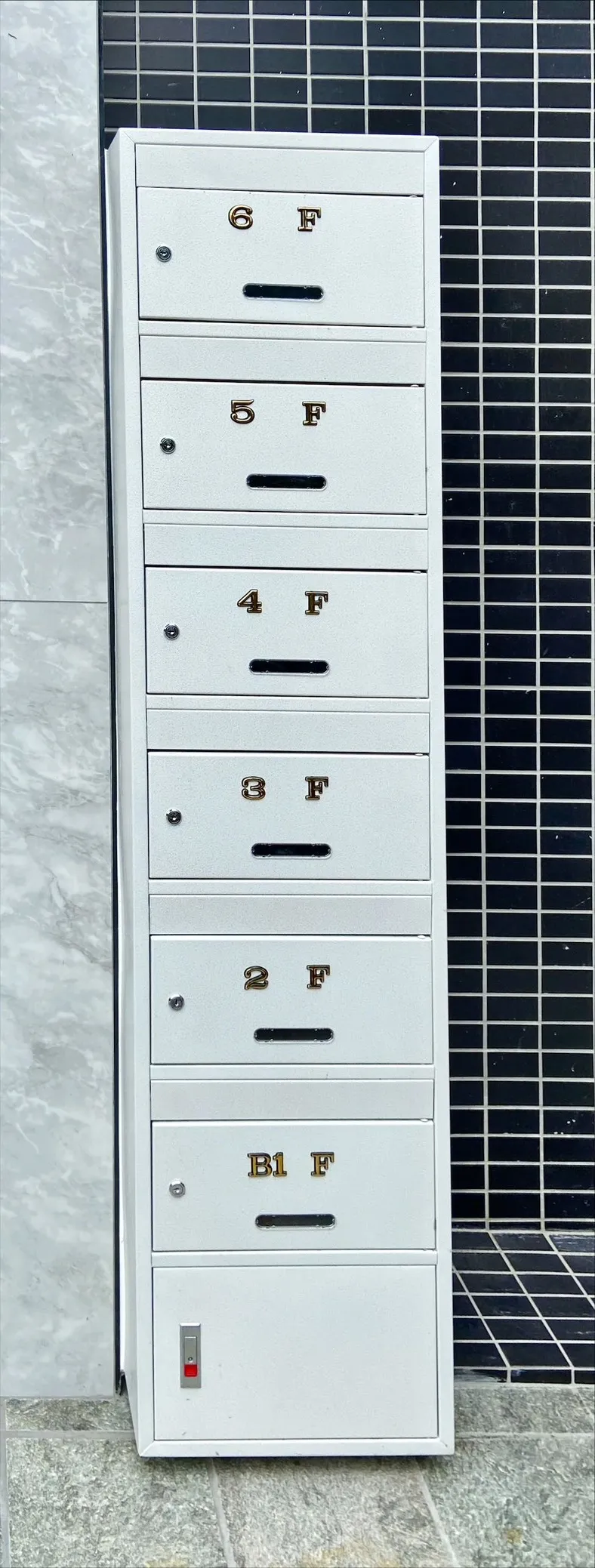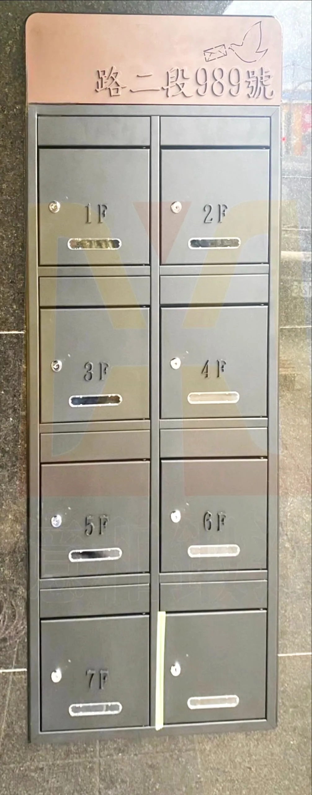 不銹鋼信箱|台中南屯-本案位於台中南屯套房出租信箱,採多層式不銹鋼信箱設計,搭配樓層標示整齊排列,耐用防鏽且方便住戶收取信件,兼具實用性與整體門面質感。