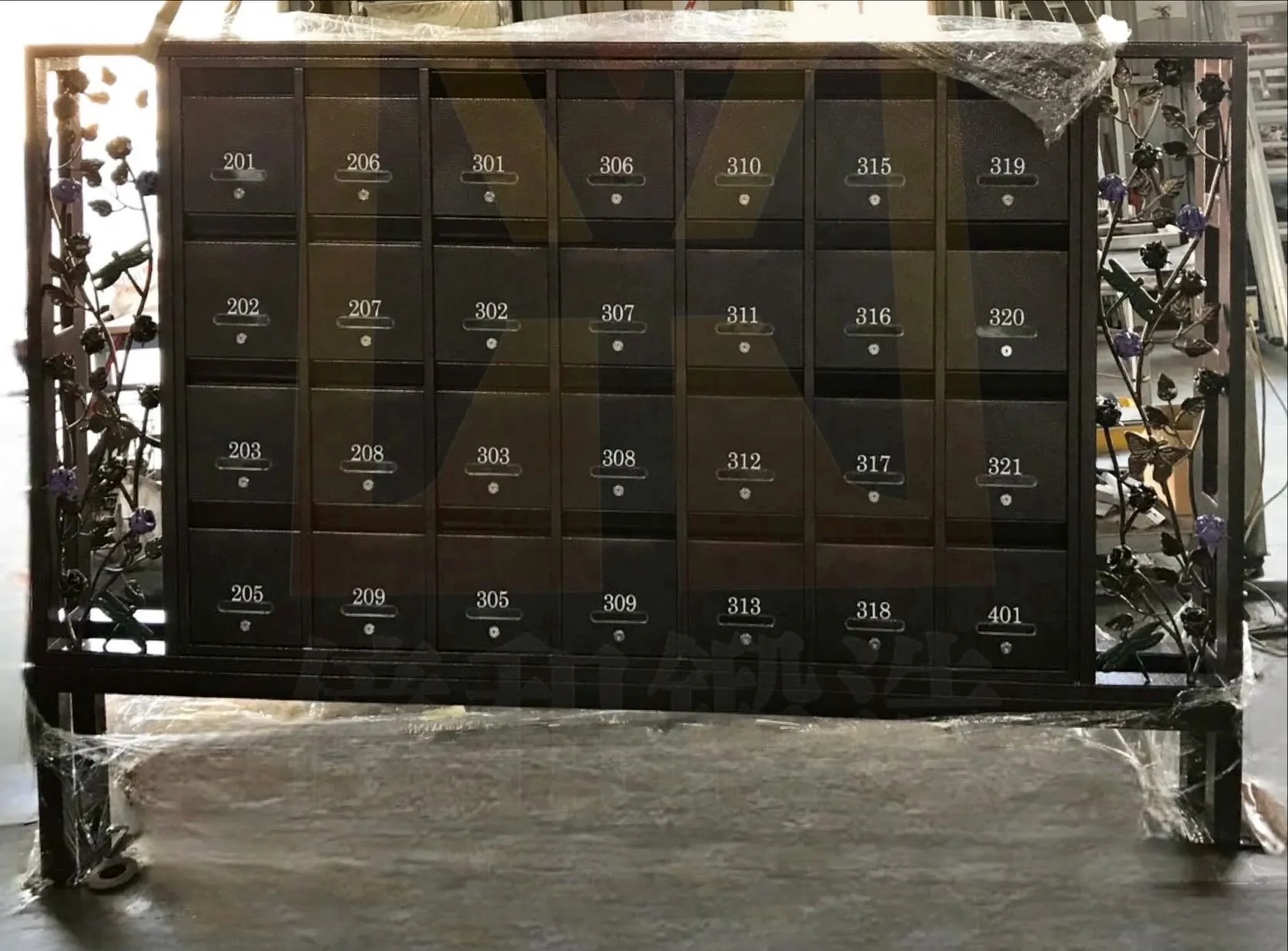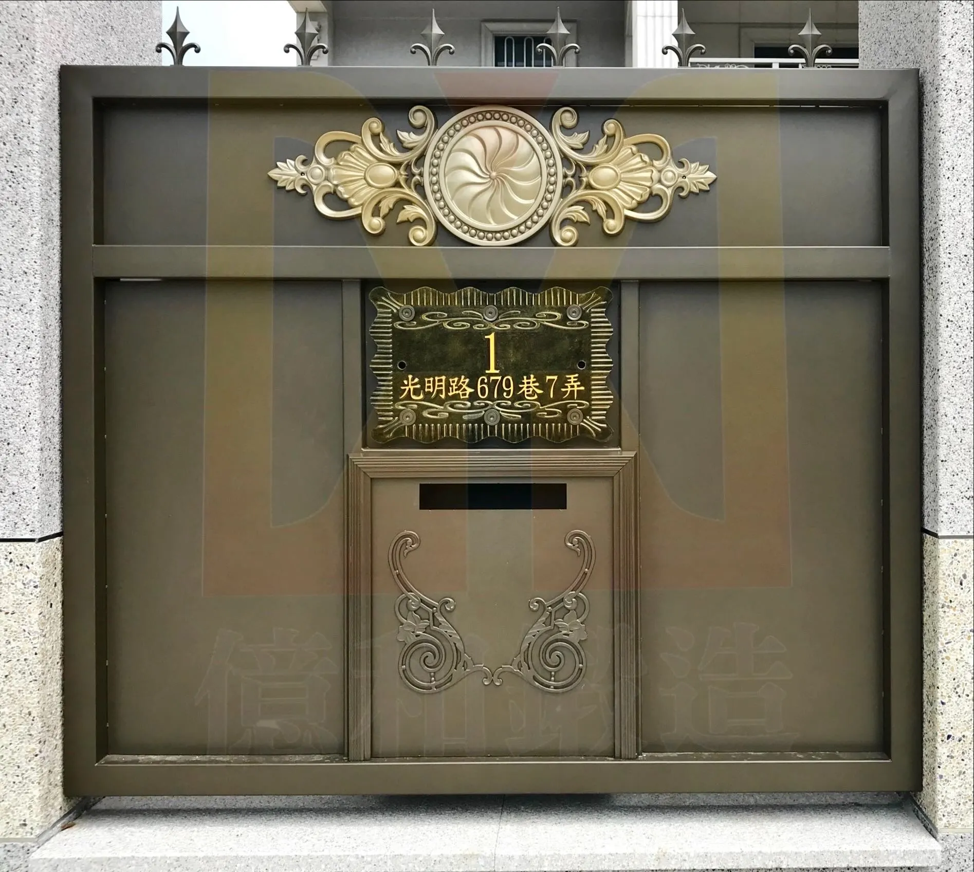 鍛造造型不銹鋼社區信箱|台中北屯-本案位於台中北屯社區住宅,不銹鋼信箱結合鍛造花飾設計,兼具收件機能與藝術美感,提升社區入口質感與整體辨識度。