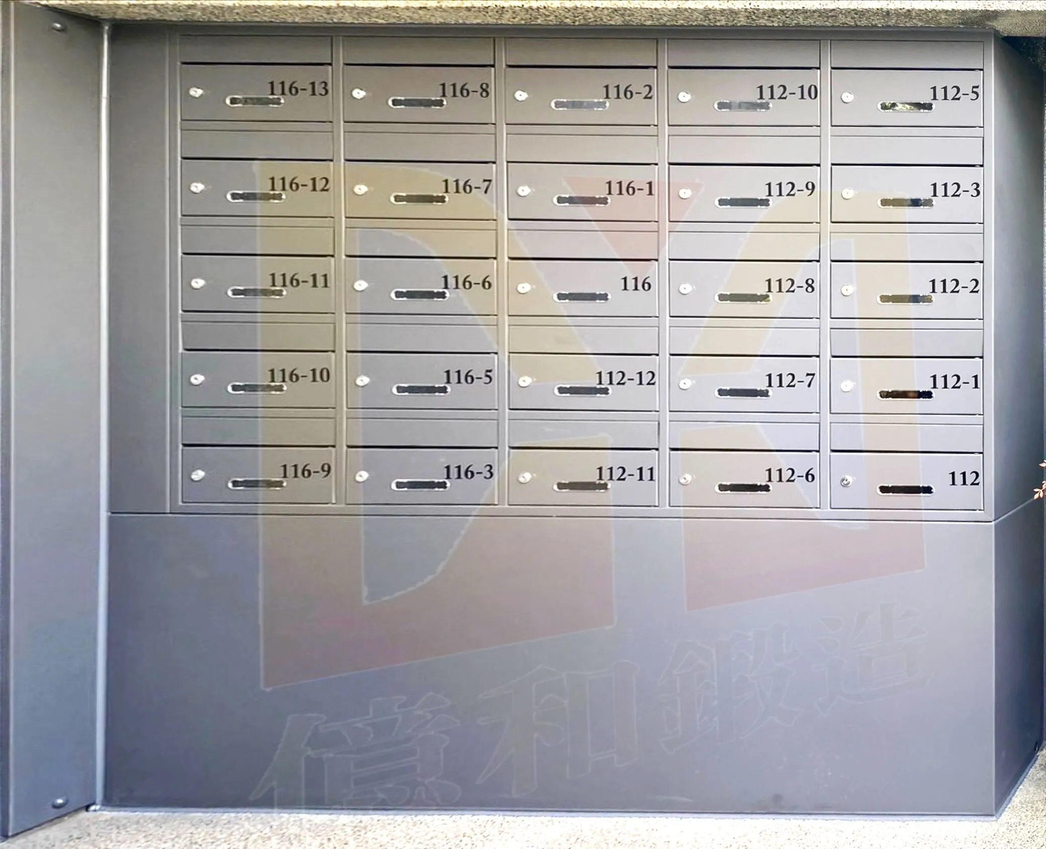華廈住宅不銹鋼集中式信箱|彰化-本案位於彰化華廈住宅,採不銹鋼集中式信箱設計,整齊排列嵌入牆面,外觀簡潔耐用,提升收件效率與公共空間整體質感。