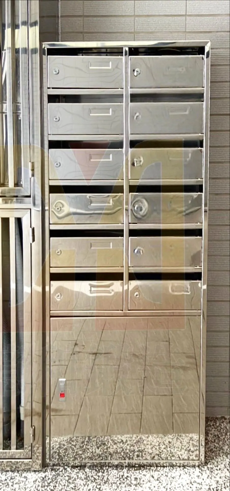 社區大樓不銹鋼集中式信箱|苗栗後龍-本案位於苗栗後龍社區大樓,採用不銹鋼集中式信箱設計,整齊排列搭配開放置物空間,提升收件便利性與整體美觀,兼顧耐用與實用機能。